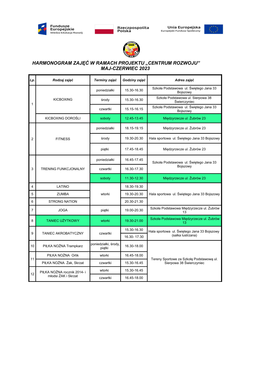 CENTRUM ROZWOJU HARMONOGRAM MAJ-CZERWIEC