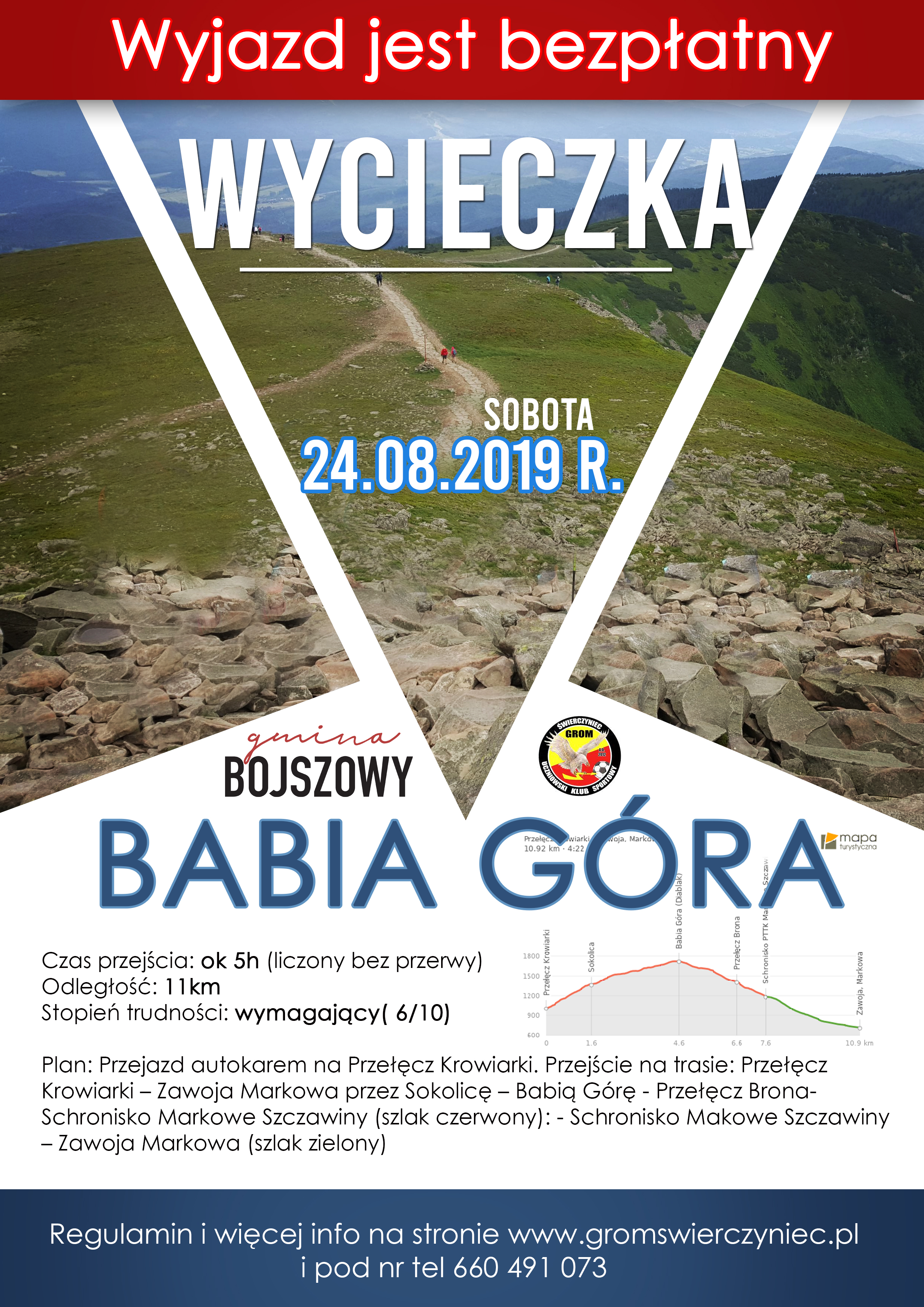 Trzeci nas wyjazd odbędzie się w dniu 24.08.2019 r. ( sobota). Tym razem będzie to bardziej wymagająca wyprawa, będziemy zdobywać Babią Górę.